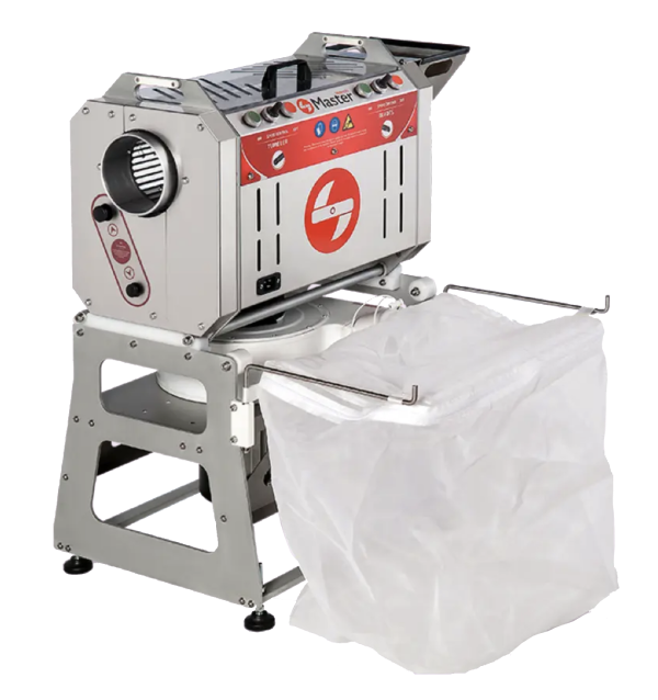 Simple and easy installation of the system as a complement to the MT Tumbler. The inclination of the machines can be adjusted to adapt the trimming speed according to the variety to be processed (structure), conditions (humidity level) and machine condition (maintenance and cutting adjustment).